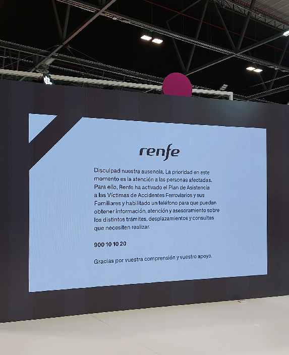 Los operadores ferroviarios implicados, Iryo y Renfe, han cancelado sus actos en la feria, igual que ha hecho Ouigo.