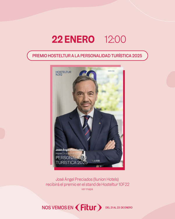 El Premio Hosteltur a la Personalidad Turística se entregará a José Ángel Preciados este jueves 22 de enero, a las 12:00 horas, en el stand de Hosteltur (10F22) situado en el pabellón 10. El consejero delegado de Ilunion Hotels ha sido distinguido con este reconocimiento que pone en valor una trayectoria profesional de más de 40 años. El galardón destaca especialmente su etapa al frente de la cadena del Grupo Social ONCE, donde ha consolidado un modelo de gestión basado en el "compromiso" con la industria hotelera y la sociedad.