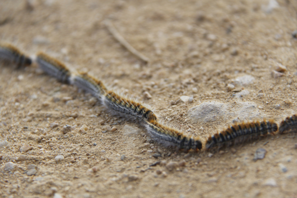 Con la llegada de temperaturas más suaves, normalmente entre febrero y abril, las orugas abandonan los árboles y descienden al suelo en fila para enterrarse.